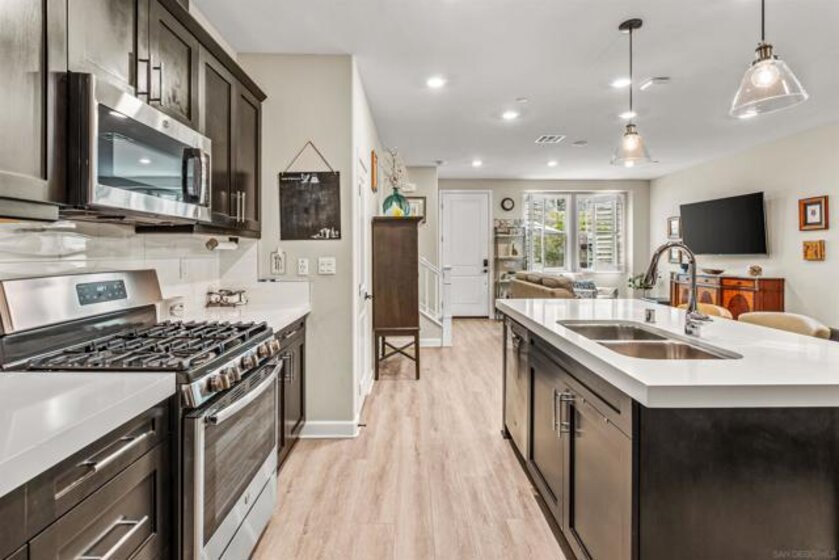 ***YOUR MOVE JUST GOT MORE ATTRACTIVE - WEEKEND SPECIAL PRICE ADJUSTMENT*** Your Vista dream townhome is here! This stunning 3-bedroom, 2.5-bath residence is fully upgraded, turnkey, and move-in ready. Grab your favorite beverage to enjoy on the front patio while listening to the soothing sounds of the relaxing fountain and soak in the breathtaking mountain views. This location enjoys the best weather in San Diego. It stays cool when it’s hot in other areas and clear skies are enjoyed while other areas of the county are covered by clouds. The chef’s kitchen is a true showstopper—perfect for hosting dinner parties or casual gatherings. The open floor plan makes entertaining effortless, with plenty of room for “just one more guest.” A leased solar system will help maximize your energy efficiency. When it’s time for fun in the sun, the community pool is only feet away, ready for all your summer splashes. Convenience is unmatched—grocery stores, schools, movie theaters, restaurants, and Starbucks are all just around the corner. And while you may not need a car in this location, the spacious attached two-car garage has you covered. Built in 2020, this modern townhome offers sleek finishes, abundant space, and undeniable style. Welcome to The Peak, a gated resort community offering easy access to shops, restaurants, schools, and the Botanical Gardens. Don’t miss your chance to claim the keys and start your next chapter in beautiful Vista!