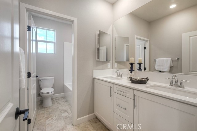 Welcome to The Peak gated resort community located walking distance to shops, restaurants, schools, & Botanical Gardens. This new community is also close proximity between the 76,78, and 15 freeways. An additional perk is that it is VA/ FHA approved and no Mello Roos. Energy efficient upgrades include dual-paned windows, designer blinds, LED lighting, tankless water heater, solar panels, and whole house fan for improved air quality. Its open concept boasts high ceilings, natural lighting and rooms that blend seemingly to give a grand first impression. The home is lined with luxury tile flooring and freshly painted interior. Kitchen include stainless appliances, quartz counters, designer backsplash. As we enter the second level, there are four bedrooms with the master suite showcases dual sinks and large walk-in closet. The laundry room is also located upstairs and offers both gas/electric washer/dryer included. A bonus feature is the prime location with amazing views of the city. For downtime and relaxation, this home is a short walk across to a resort-style pool/spa, fire pits, and multiple BBQ stations for the ultimate California lifestyle. This home is IMMACULATE and move-in ready!
