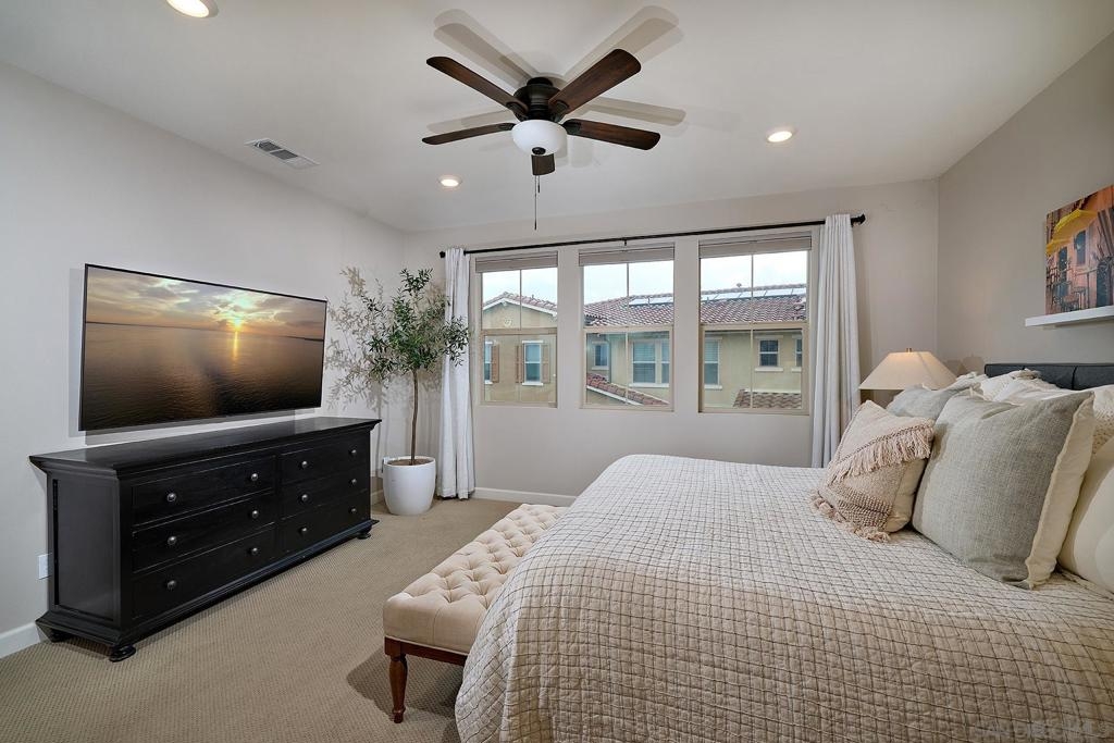 Premier Location within gated community of The Peak, this WiFi certified home is in pristine condition. Oversized courtyard with custom pavers & mountain views. LVP and designer carpet throughout. Open kitchen w/ quartz counters, decorative backsplash, island, SS appliances & pantry. Custom decorative tile wall in powder bath. Oversized primary suite w/ walk-in closet & spa-like bathroom. Upstairs laundry room with room for full sized washer/dryer. Ceiling fans @ bedrooms & AC. Oversized 2 car garage. Solar. Telsa EV charger.