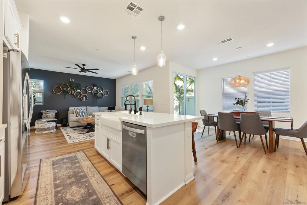 Enjoy modern design and comfort in this beautiful condo within the gated community of Sierra in Vista! This home features an open floor plan filled with natural light, a spacious living and dining area, and a stunning kitchen equipped with stainless steel appliances, granite countertops, and white shaker cabinetry. The master bedroom offers a peaceful retreat, complete with a walk-in closet and a spa-like bathroom that includes dual vanities, a soaking tub, and a glass-enclosed shower. The additional bedrooms and loft provide ample space and comfort for family and guests. The private backyard is a true oasis, featuring King Palm trees, turf, and a patio for outdoor entertaining. Other features of the home include a dual-zone HVAC system, a water filtration system, and a two-car garage. Close to shopping, dining, and the 78 freeway, this home won't last long!