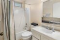 This charming unit is the largest remodeled home in a quiet 55+ community, complete with a variety of thoughtful upgrades that enhance both style and comfort. Newer windows with plantation shutters, and removal of popcorn ceiling throughout. A kitchen outfitted with granite countertops, maple cabinets, and an ultra-useful garden window for extra counter space or a sunny spot for plants. Brand new tankless water heater. The master suite boasts a cathedral ceiling, mirrored closet doors, and a master bath with tile flooring and a walk-in glass block shower for ease of access. Additional luxury touches like skylights that brighten the space naturally, updated lighting fixtures, and a newer built in entertainment center are included. The dining area stays breezy and bright, opening via slider to an inviting brick patio. The home is within steps to the clubhouse, community pool and spa, mailbox, and guest parking. This home has an amazing location, and everything you could want for your retirement.