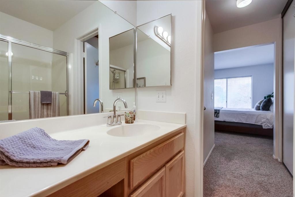 Rarely Available Upstairs Private 2 bed 2 full bath Condo at The Park in Sommerset of Vista. Remodeled with all new paint, new carpet, new HVAC, new water heater, painted kitchen with new appliances, in unit laundry, rooms are equal size, tons of light throughout, AND single detached garage plus one designated parking spot right in front of the unit. Gym/Pool/Courts. Great location! VA & FHA APPROVED COMPLEX VA & FHA approved! Upstairs Corner Unit so light coming in is amazing! Patio looks out over hillside with tree-lined views. Gorgeous park-like community. Bedrooms are both large and primary bedroom has two closets plus ensuite bathroom. Bedrooms are split so great for guests/roommates. Acoustic ceilings removed during painting. Full size side by side washer and dryer closet. Well cared for over the last 20 years. Come enjoy your new home!