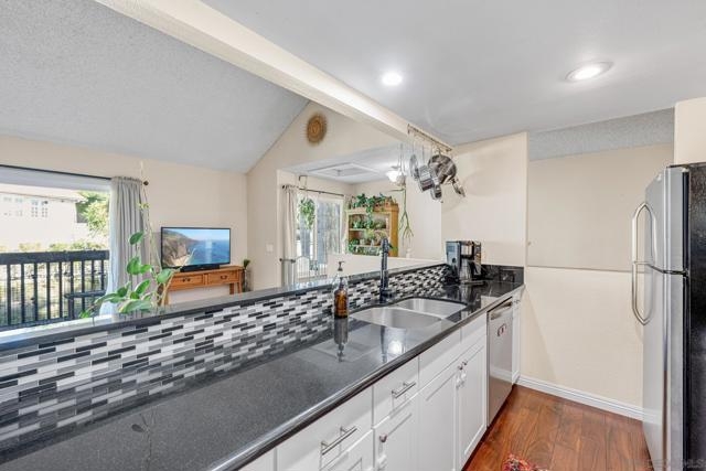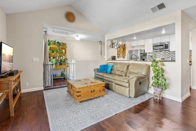 Discover modern elegance and convenience in this highly upgraded, turn key, end unit townhouse in the highly sought after Vista Knolls community. This tri-split layout offers a top floor great room and dual primary bedrooms with large walk-in closets, each on their own exclusive levels. The interior has been highly upgraded, showcasing newer laminate and carpet flooring, complemented by dual-pane, energy-efficient windows that provide both style and improved livability. The gourmet kitchen is a highlight, featuring white shaker cabinets, gleaming granite countertops, tile backsplash, and stainless steel appliances, including a newer dishwasher. Unwind in the spacious great room complete with a cozy fireplace, and views of the community pool from the attached balcony. For your comfort, the owners installed air conditioning into the home about 3 years ago. This homes also boasts an oversized attached 2-car garage, in-unit full size laundry area, and the rare benefit of a designated yard. With quick access to freeways and shopping, don’t miss this chance to make this exquisite property your own.