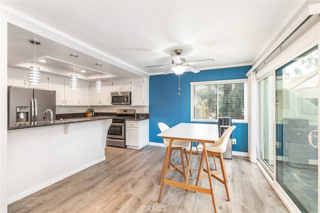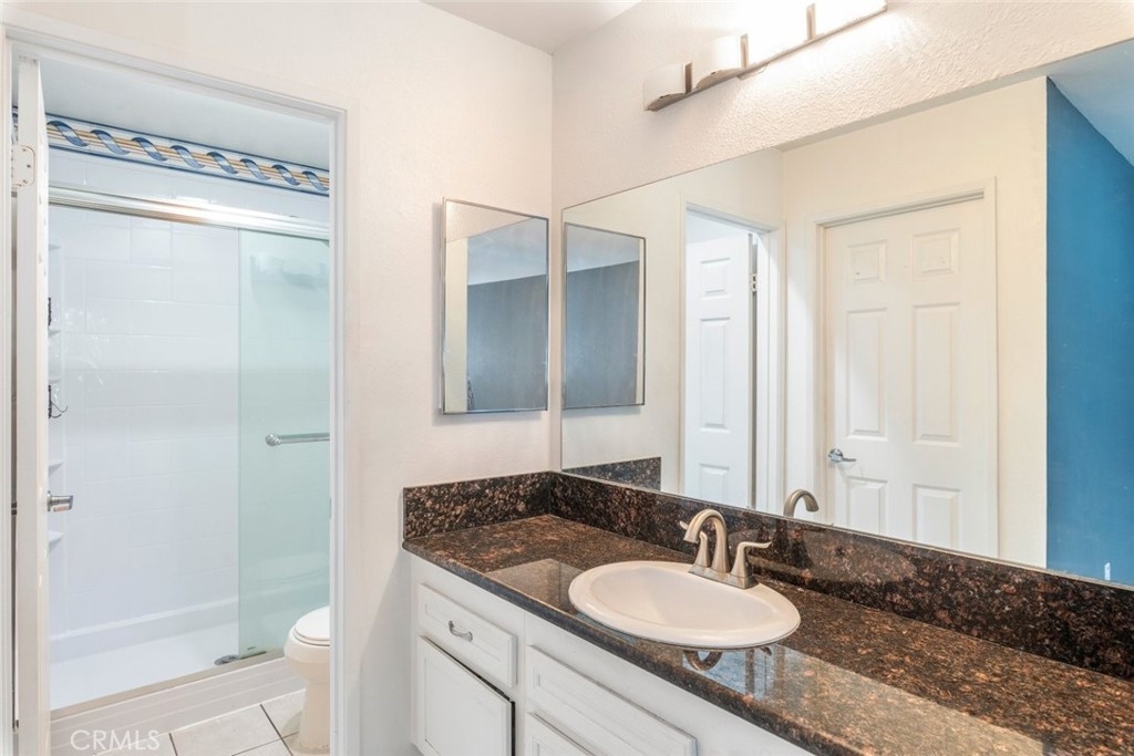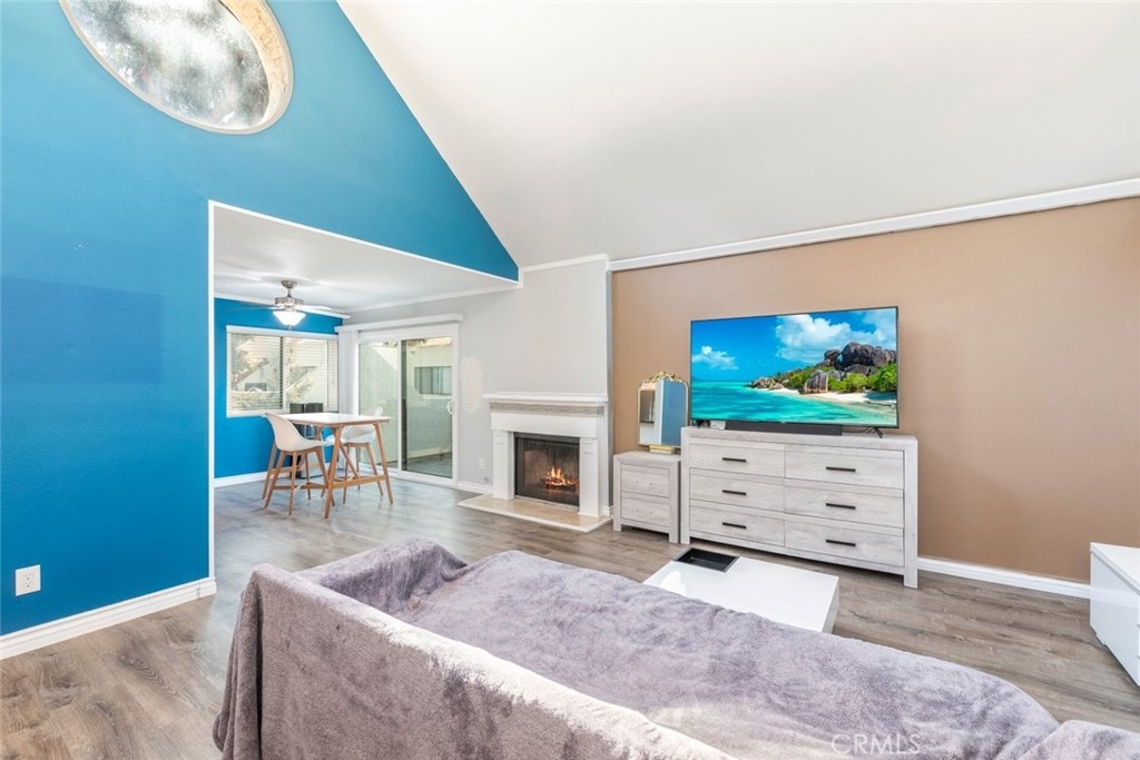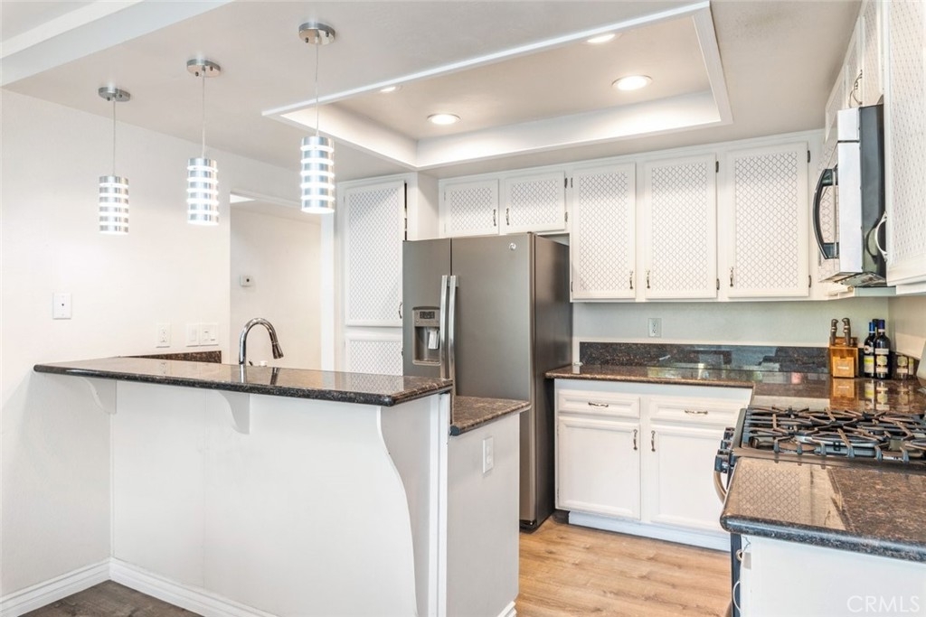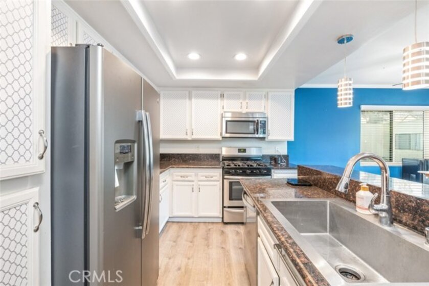 Upper Corner condo in Melrose Park Community, boast Cathedral ceilings that for a spacious feel. With newer dual pane windows and ensuring energy efficiency. Family room with beautiful flooring and a cozy fireplace! Natural light fills the home! Kitchen with granite counter tops, stainless steel appliances, recessed lighting, large stainless-steel basin sink and includes the refrigerator! Great dining area and breakfast bar area! Convenient Indoor laundry and includes the washer and dryer. Spacious primary bedroom and primary bathroom with large walk-in closet. Both bathrooms with granite counter tops! Enjoy your private patio area. Property also has 1 car garage and assigned parking space. Condo is situated close to the main community pool and spa to relax and enjoy! Community offers pools, spa, bbq area and tennis courts! Turnkey home with lots of updates schedule your tour today!