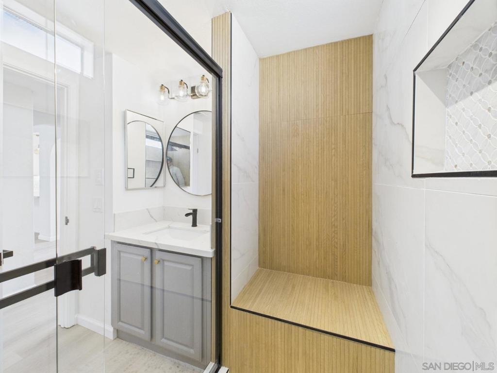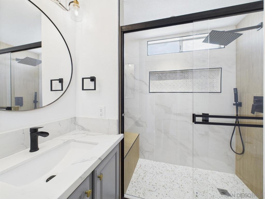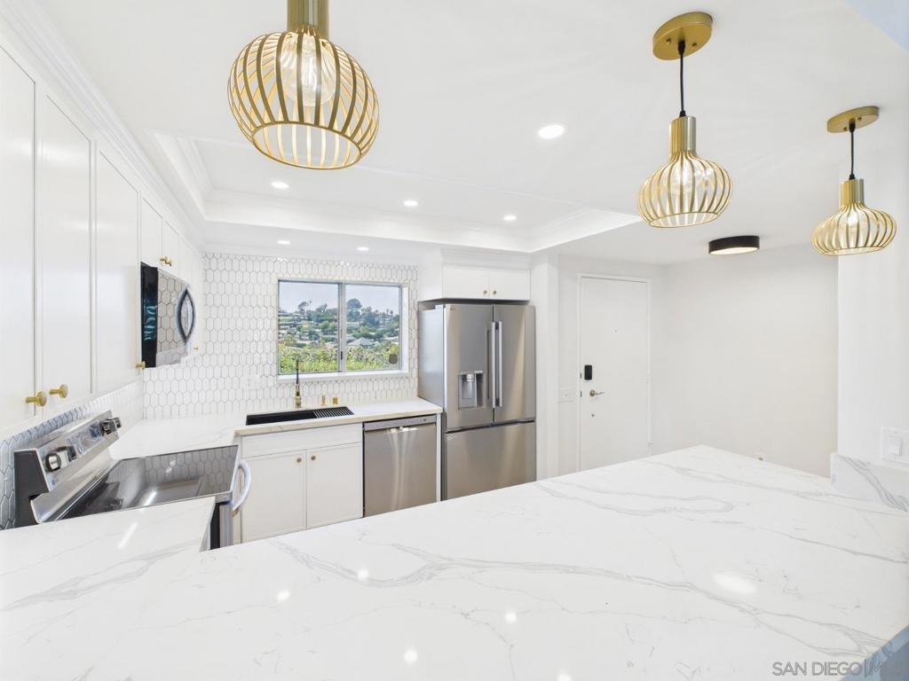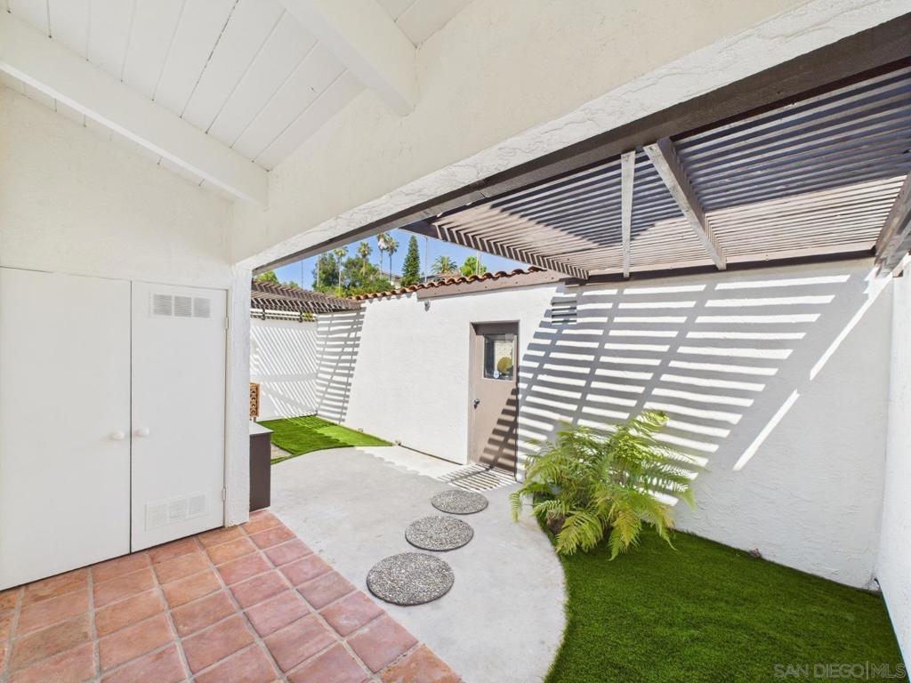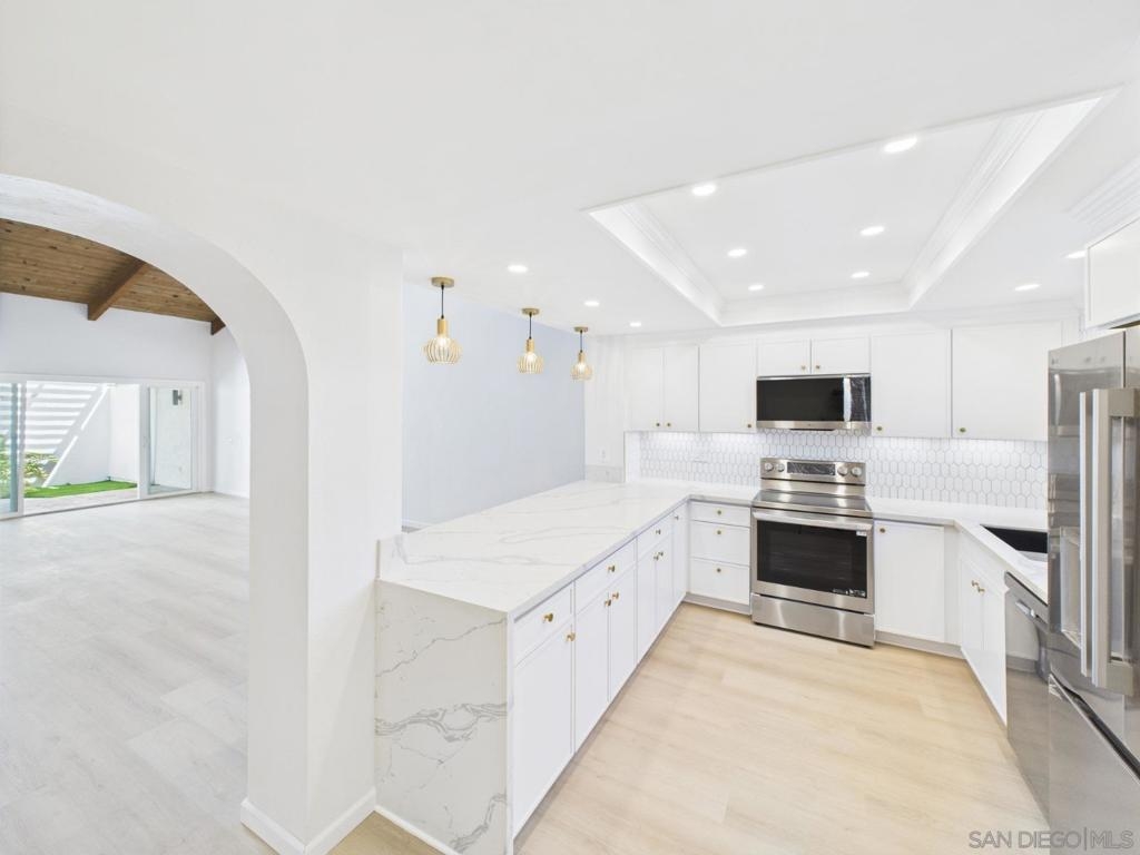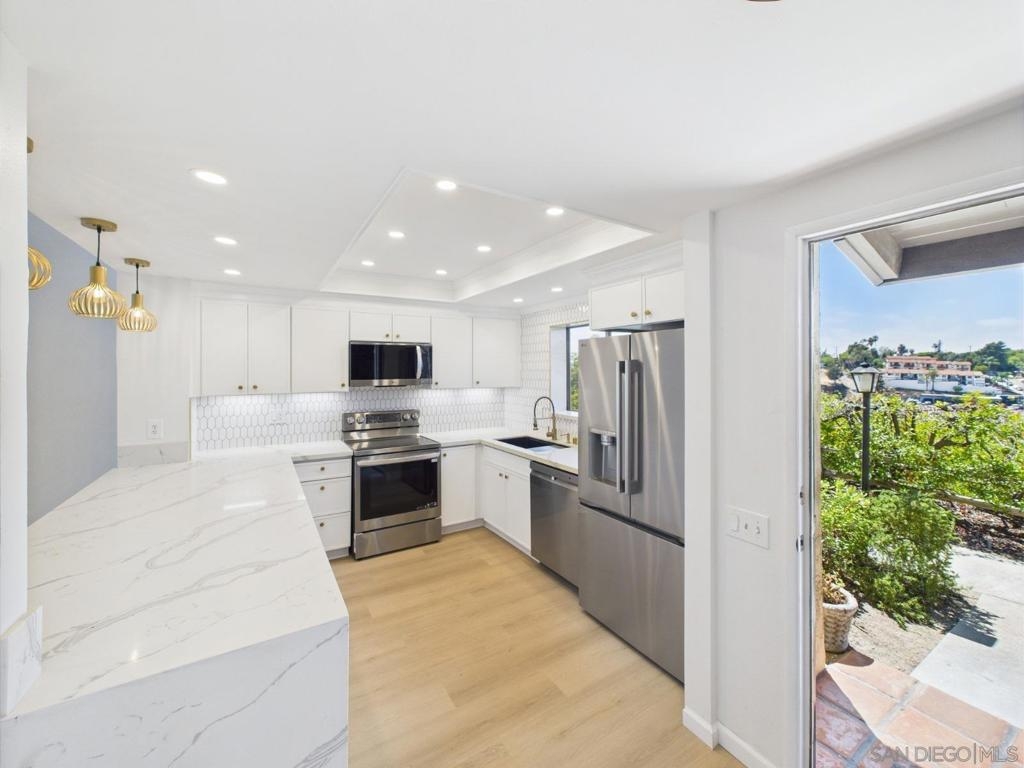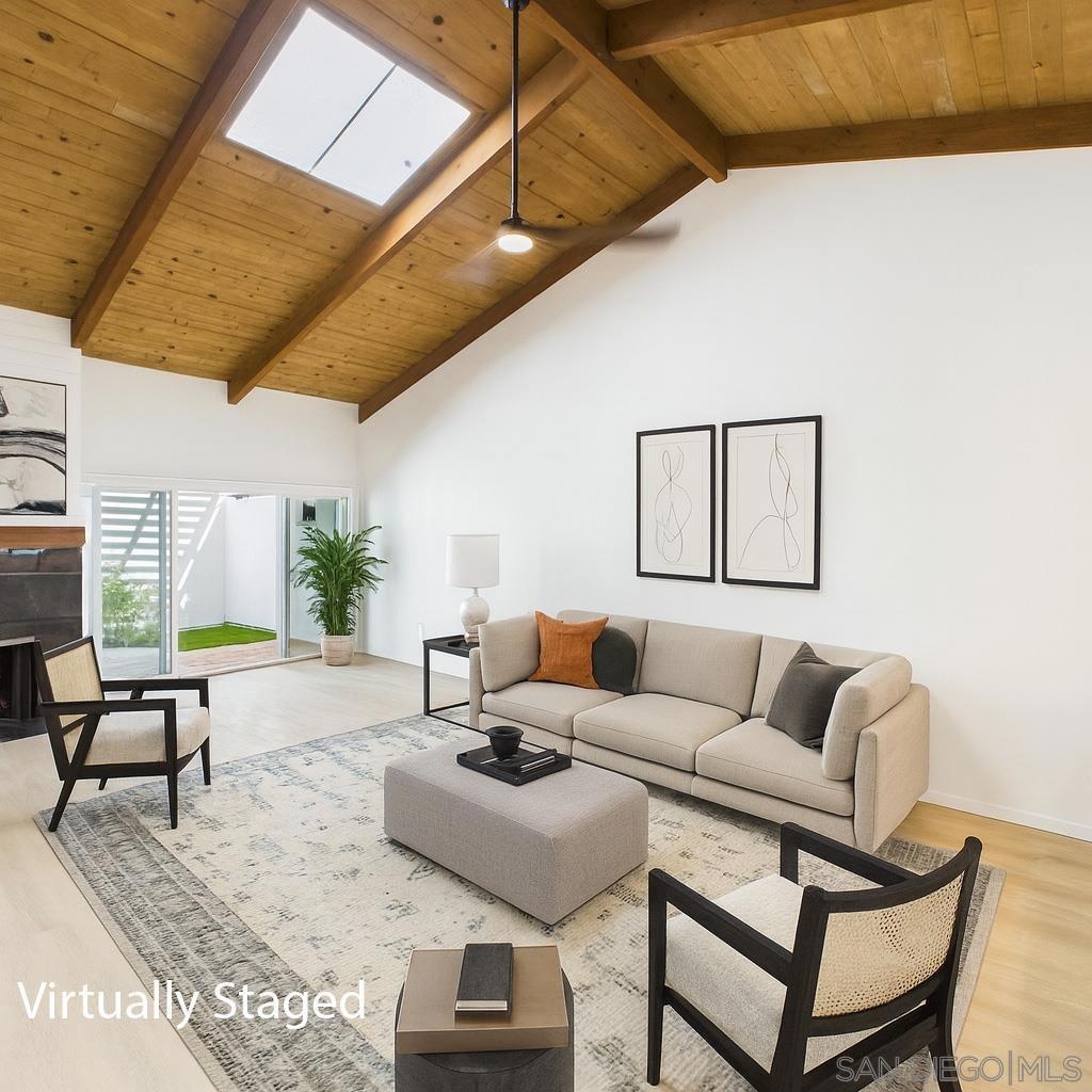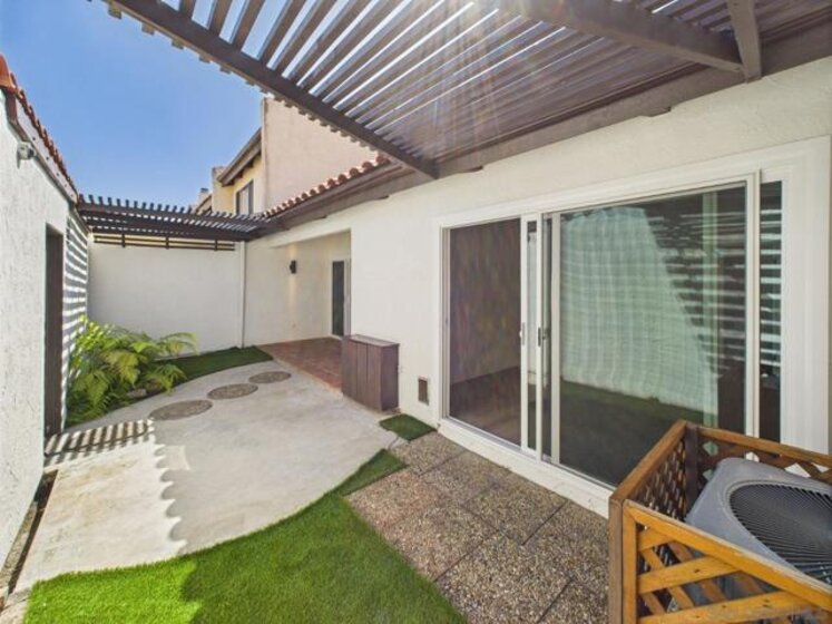 Elegant Single-Story Retreat in Bel Air Vista – Fully Remodeled Luxury Living Beautifully remodeled single-story home in exclusive Bel Air Vista! This 2BR/2BA townhome features vaulted ceilings, a skylight, and an open-concept layout with SPC flooring throughout. The gourmet kitchen boasts quartz waterfall countertops, picket backsplash, stainless appliances, and a coffered ceiling with recessed lights. The spacious living room showcases a dramatic black tile fireplace with shiplap surround and patio access. Both bathrooms are fully upgraded with walk-in rain showers, designer tile, and matte black fixtures. The primary suite offers vaulted ceilings and a spa-style bath with bench seat and mosaic niche. Enjoy a private courtyard, attic storage access, detached 2-car garage, dual-pane windows, fresh paint, and newer systems. Community amenities include a pool, spa, clubhouse, and lush landscaping. HOA covers water, trash, roof, and exterior. Prime location near shops, restaurants, parks, and just 15 mins to the beach! I..Elegant Single-Story Retreat in Bel Air Vista – Fully Remodeled Luxury Living Beautifully remodeled single-story home in exclusive Bel Air Vista! This 2BR/2BA townhome features vaulted ceilings, a skylight, and an open-concept layout with SPC flooring throughout. The gourmet kitchen boasts quartz waterfall countertops, picket backsplash, stainless appliances, and a coffered ceiling with recessed lights. The spacious living room showcases a dramatic black tile fireplace with shiplap surround and patio access. Both bathrooms are fully upgraded with walk-in rain showers, designer tile, and matte black fixtures. The primary suite offers vaulted ceilings and a spa-style bath with bench seat and mosaic niche. Enjoy a private courtyard, attic storage access, detached 2-car garage, dual-pane windows, fresh paint, and newer systems. Community amenities include a pool, spa, clubhouse, and lush landscaping. HOA covers water, trash, roof, and exterior. Prime location near shops, restaurants, parks and the beach!