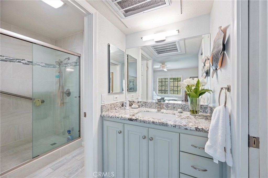 Back on market, Buyer didn't perform! DON'T LET THIS ONE GET AWAY! Come home to this highly upgraded, ground level unit, in the highly desirable Charlemont community in the sought-after City of Vista! This condo offers 2 BR, 2 BA, and 1 car detached garage. This is the definition of MOVE-IN-READY!! With thousands of dollars worth of upgrades and updates, this home is sure to check off all the boxes and is ready for you to simply move in and enjoy! From the moment you enter you're sure to notice and appreciate the contemporary and modern appeal! Wood-plank style ceramic tile flooring runs throughout most of the home, while the convenience and practicality of carpet is found in both bedrooms! The cozy family room consists of plantation shutters, upgraded fireplace surround, and a modern paint scheme! No expense was spared to give the open-concept kitchen its current AWE FACTOR! Featuring granite countertops with subway tile back-splash, contemporary cabinetry with glass inserts and lighting, stainless steel and black appliances, updated can lighting, and more! The Master suite is sizeable, offers plantation shutters, mirrored closet doors, ceiling fan, and has direct access to the master bathroom. Relax, unwind, and enjoy your mornings and evenings in your own private courtyard easily accessible from your family room area. HOA community amenities include pool, clubhouse, water and trash service, and common areas maintenance. Additionally, this home is conveniently located minutes from freeway access, restaurants, shopping, parks, schools and more! DON'T LET THIS ONE GET AWAY! SCHEDULE A SHOWING TODAY!!